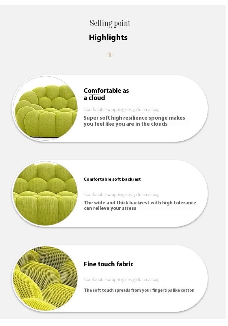 Cloud Curved Sofa Stylish Fabric Designer Couch Fluffy Cloth Sofa Sets Modular Football Sofa for Living Room Furniture